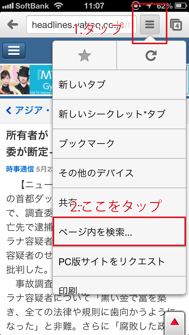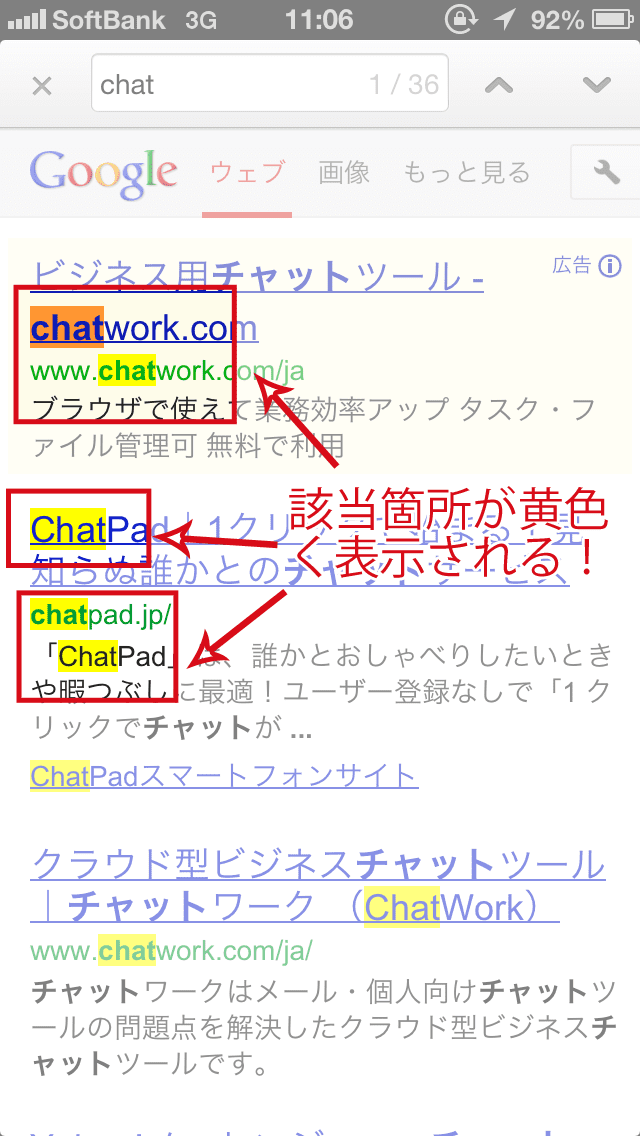 要は、パソコンのブラウザとかでよく「Ctrl+F」でページ内検索してたのを、同じことをスマホでもやれるようにしたよ、ってのがChromeなんです。
