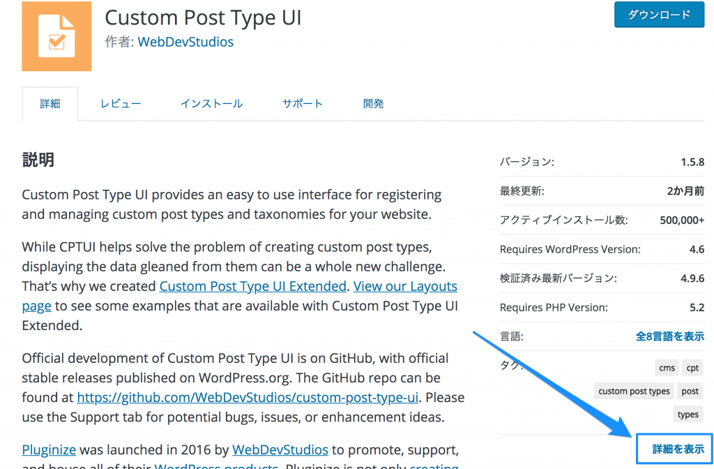 今回は例として、カスタム投稿やカスタムタクソノミーを管理できる有名なプラグイン「Custom Post Type UI」を古いバージョンに戻してみます。